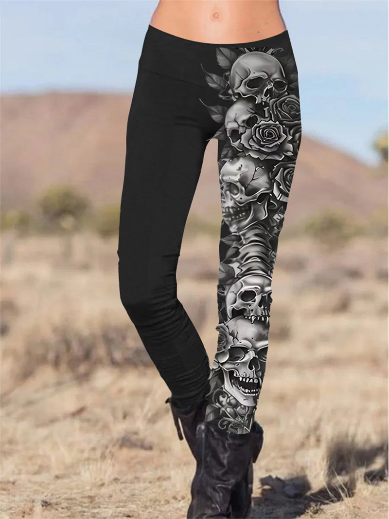 Gothic Pattern Skull Printed Slim Fit Pants